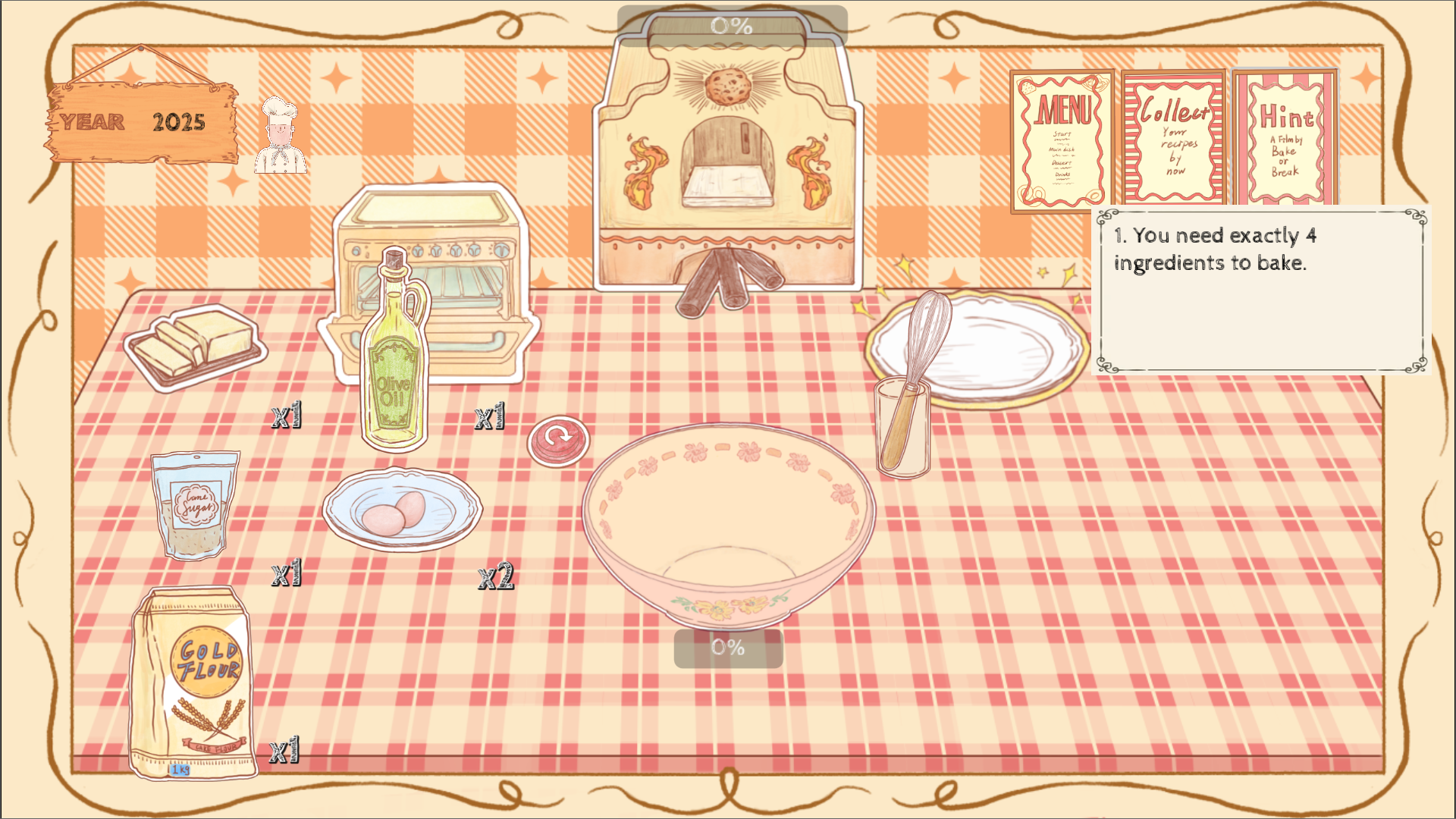The game jam theme shines through every choice you make. Will you play it safe and earn modest approval—or risk it all with daring ingredient rolls, bold experiments, and risky guesses about your judges’ tastes? Only those willing to gamble for glory can seize the Baker’s Flame.